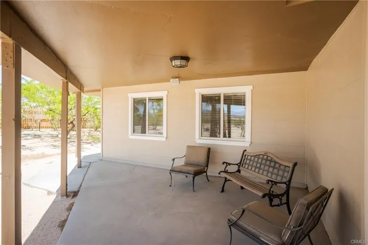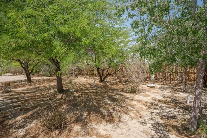 Welcome to your private desert escape! Nestled on 5 sprawling acres in the heart of Joshua Tree, this beautifully upgraded 2-bedroom, 1-bath home offers over 1,400 sqft of spacious, open-concept living. The property blends rustic charm with modern comfort, featuring stylish tile flooring throughout, upgraded tile countertops in both the kitchen and bathroom, and all appliances included for a truly move-in-ready experience. One of the bedrooms is detached—ideal as a guest suite, home office, or creative studio. The home also includes a carport, and approximately 1 acre is fully fenced for added privacy and security. Outside, you’ll find mature trees, beautiful desert landscaping, and panoramic skies that stretch for miles. This unique property can be sold partially furnished upon request, making it even easier to begin your desert lifestyle. Whether you’re seeking a peaceful retreat, a primary residence, or a vacation rental opportunity, this desert oasis is ready for you to call it home.
