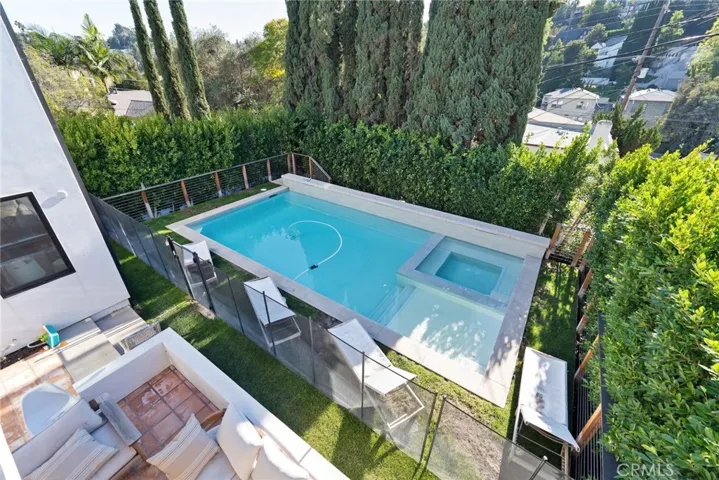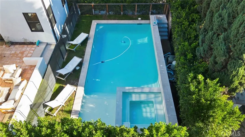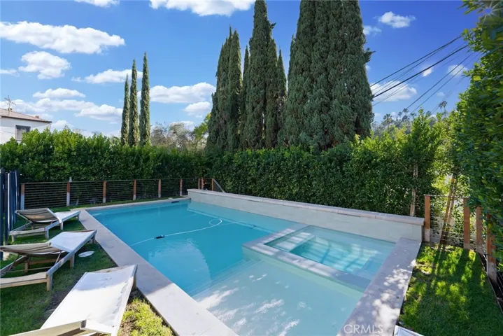 A fully gated, architecturally reimagined Silver Lake estate offering rare privacy and resort-style living. Architecturally reimagined in 2023/2024, the home was rebuilt to the studs and expanded with a new second story, totaling 2,773 sq. ft. The property also includes a newly built two-story 809 sq. ft. ADU and a newly constructed heated saltwater pool, spa, and baja shelf, framed by mature trees, privacy hedging, and new hardscape.