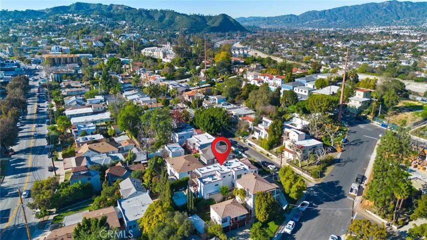 Located within the Ivanhoe School District and moments from the Silver Lake Reservoir and neighborhood dining and shopping, the home offers tranquility without compromise. The main residence features two true primary bedroom suites (one upper level, one lower level), an additional upstairs bedroom, a downstairs den opening to an outdoor dining area, multiple decks, and a flexible bonus space for office, gym, or storage.