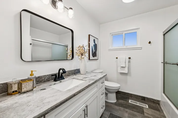 Welcome to this stunning single-story North-East facing in the sought-after Davona/Broadmoor community. Designed for modern living, the home features a spectacular “Great Room” with vaulted ceilings that create a light, bright & airy atmosphere. The chef-inspired kitchen is the true heart of the home, anchored by a large social island with striking pendant lighting, stainless steel appliances, induction stove & abundant storage. The thoughtful floor plan includes formal living and dining rooms, plus a cozy family room, all featuring brand-new laminate flooring and fresh interior paint throughout. Relax in the spacious primary suite, complete with a sitting area or office, walk-in closet & double-sink vanity. Separate laundry room. 2 car garage. Outside, the patio and low-maintenance lawn offer the perfect space for effortless entertaining. Positioned for ultimate convenience, you are minutes from top-rated schools, Iron Horse Trail, and major commuter routes. Near local grocery and retail nodes along Alcosta and Crow Canyon corridors, and recreational facilities such as the San Ramon Community Center and the nearby Cal High aquatic center. Just 2.7 miles from the premier City Center Bishop Ranch, home to THE LOT luxury cinema, Equinox, and the region’s best dining and retail.