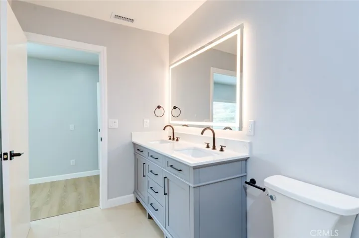 This home’s remodel includes Sahara Matte Porcelain flooring in both bathrooms, maple beige laminate hardwood flooring throughout, new windows, new blinds, new bedroom doors, a new entry door, new baseboards, and designer paint throughout. Recessed lighting has been added to the living room, kitchen, and primary bedroom. The entire home has been updated with new outlets and switches.
