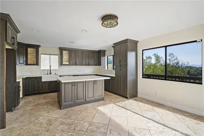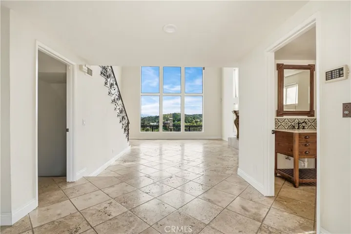 Welcome to this remarkable Mediterranean estate, peacefully situated in the scenic hills of Woodland Hills just south of the boulevard. Revel in panoramic city light and lush golf course views from virtually every room. Designed for both grand entertaining and comfortable day-to-day living, this luxurious home features floor-to-ceiling windows, soaring ceilings, and an expansive open floor plan. A dramatic formal entry leads to three spacious bedrooms and three bathrooms. The inviting living room impresses with a custom fireplace and elegant travertine flooring. The chef’s kitchen is a showcase of modern luxury, with updated cabinetry, quartz countertops, a large island with a farmhouse sink, and stainless-steel appliances. The master suite is a true sanctuary, complete with a private balcony, a large closet, and a lavish en-suite bathroom featuring dual sinks, a spa shower system, and a relaxing jacuzzi tub. Each additional bedroom also offers its own private balcony. An exceptional highlight of this property is the fully finished basement—approximately 1,200 square feet of flexible space, including three additional rooms and direct access to the lower-level deck, perfect for gatherings and celebrations. Experience the pinnacle of luxury and sophistication in this Mediterranean retreat, where every detail has been thoughtfully curated for timeless elegance and elevated living.
