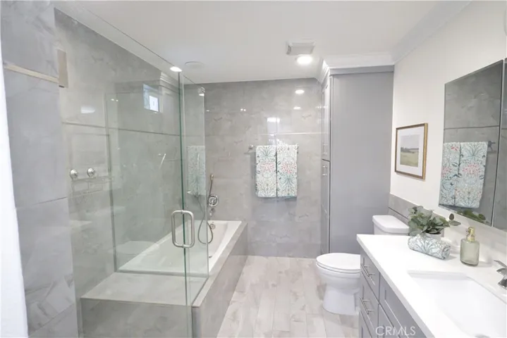 Fully Remodeled. Open Concept Kitchen. Luxurious Tiled Fully Remodeled Bathrooms. Primary Suite has Redesigned Oversized Step in Shower Plus Separate Soaking Bathtub. Central Air Conditioning, 1,199 Sq. Ft. ,2 Bedrooms 1.75 Baths , Smooth Ceilings, Newer Recessed LED Lighting, New Low Pile Carpet in the Bedrooms, New Paint, High Quality Wood Flooring in the Entry, Dining and Living Room Areas. Double Pane Windows and Sliding Doors, Move -In Ready. ( Some Furniture Can Remain ) Garden Villa Type Floorplan – Model Name is Villa Capri 2. Easy Access to the World Class Golf Course and Very Close to Clubhouse 4 ( Pool Hot Tub and all the Arts & Crafts- Wood Shop , Jewelry Making, Art and Ceramics ( Both Slip Casting and Wheel ) Studios, Sewing and Quilting Rooms , Photography Studio & Lapidary ( Stone Cutting ,Tumbling, & Glass Polishing ). 7 Clubhouses, 5 Swimming Pools, Pickle Ball, Tennis, Bocce, Ping Pong, 2 Computer centers ( PC and MAC )Free Local Bus Transportation, Welcome To Laguna Woods Village less than 8 miles to the Beautiful Blue Pacific Ocean in Laguna Beach.