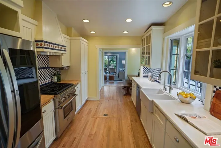 Experience quintessential Pasadena living, a perfectly remodeled California Craftsman Bungalow on one of the city’s most enchanting tree-lined streets. This Arts and Crafts gem sits on a deep lot framed by historic streetlights and wide sidewalks. Inside, the open-concept living area shines with hardwood floors, a decorative tiled fireplace, and extensive built-ins. The gourmet kitchen is a chef’s dream, featuring Shaker cabinetry, Quartz counters, built in filtered water, a farmhouse sink, and a premium Wolf stove. The home flows effortlessly into a spacious family room, that leads to a professionally landscaped backyard. This outdoor sanctuary boasts a majestic oak, brick patio, and vibrant gardens, a gardener’s dream . The private Primary suite upstairs offers soaring ceilings, and breathtaking San Gabriel Mountain views. All bedrooms are generous in size. The guest bathroom will lure you into wanting to soak your worries away. Modern upgrades include a purified water filter, electric car charger, HVAC and a detached 2-car garage with a bonus 0ffice/room behind the garage. Located minutes from Metro, Eaton Canyon, and Victory Park, this home offers unrivaled walkability and style.
