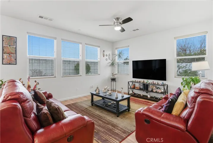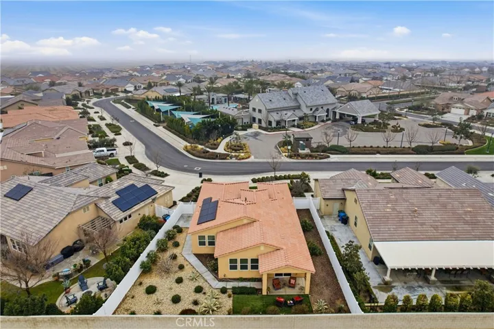 Welcome to this prestigious home located in the highly sought-after Highgate Seven Oaks Regents 55+ community gated community. This beautifully maintained residence features 2 bedrooms, 2 bathrooms, OWNED solar, and a den/bonus room currently used as a home office, offering flexible living space. Upgraded luxury vinyl plank flooring flows throughout the home, complemented by a minimal, low-maintenance landscape and solar for enhanced energy efficiency. Ideally situated directly across from the community clubhouse, the home provides convenient access to the gym and resort-style amenities including a full gym, chef’s kitchen, common areas, pool, jacuzzi, pickleball courts, putting green, and more. The HOA offers a robust calendar of community events and activities such as BBQs, bingo, bunco, quilting club, strength and movement classes, dance classes, cocktail nights, poker nights, book club, and many other social opportunities.
