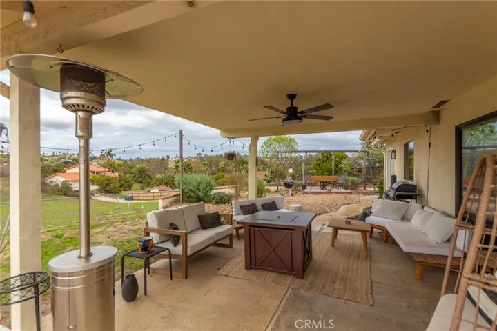 Welcome Home to Your Modern Mediterranean/Spanish Estate with Stunning Views & Upgrades! Nestled in the highly desirable Morro Hills community, this beautifully upgraded 3-bedroom, 2.5-bath home offers the perfect blend of modern convenience and serene country living. Located near the Oceanside border, enjoy easy access to coastal amenities while embracing the peace and privacy of this 1.01-acre flat, usable lot—perfect for gardening, recreation, or future expansion. Plus, you’re just minutes from beaches, hiking trails, shopping, and date nights at the famous Fallbrook wineries! Step inside this peaceful sanctuary, where a spacious formal living room with a custom wood-burning fireplace welcomes you. The formal dining room provides a great space for entertaining and seamless indoor-outdoor living. The home boasts a fully remodeled kitchen done in 2024, featuring new appliances, newly painted kitchen and bathroom cabinets, and stylish finishes throughout. The open-concept kitchen and family room also includes a large cooktop island with waterfall quartz countertops, a cozy breakfast nook, and a second wood-burning fireplace. The large master suite features a gorgeous en suite, walk-in closet, and sliding doors leading to the back patio, where you’ll be greeted by breathtaking scenery and panoramic views. Step outside and enjoy your morning coffee or evening happy hours under the expansive covered patio. The fenced backyard is perfect for relaxing or entertaining, surrounded by orange, apple, lemon, and fig trees, creating a tranquil retreat. Also surround sound and audio for outdoor and living room music. Additional features include an indoor laundry room off the garage with gas washer and dryer hookups and a bonus deep sink, new HVAC added in 2023, plus a semi-circle driveway and three-car garage for ample parking and storage. Don’t miss this opportunity to own a serene and move-in-ready estate with incredible views, modern upgrades, and space to grow in one of Fallbrook’s most sought-after communities!