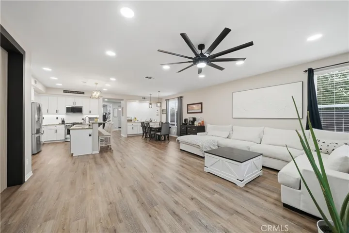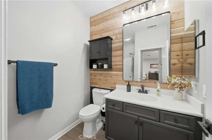 Beautifully updated home with solar located in the highly desirable Smith Ranch community of Wildomar— bordering Murrieta with easy access to freeways, shopping, schools, parks, and trendy dining! This turnkey residence offers nearly 3,000 sq ft of well-designed living space featuring 4 bedrooms and 3 full bathrooms, including a highly desirable MAIN LEVEL BEDROOM AND FULL BATH—perfect for guests, multigenerational living. Inside, you’re welcomed by a large mudroom with built-in storage and OPTIONAL 5th BEDROOM, currently being used as an office accented by elegant French doors. The renovated kitchen is a true showstopper, showcasing soft-close cabinetry and drawers, stainless steel appliances, granite countertops, and a designer backsplash. Seamlessly connected living spaces include a formal dining room, dining nook, and a spacious family room highlighted by a custom gas fireplace—ideal for both everyday living and entertaining. Tasteful upgrades throughout the home include custom interior paint, luxury vinyl plank flooring in the main living areas and bathrooms, and plush carpeting in all bedrooms. Upstairs, the primary suite features dual oversized closets, a cozy gas fireplace, and a beautifully updated en-suite bath with dual vanities and a custom walk-in shower. Additional highlights include an upgraded secondary bathroom and an upstairs laundry room complete with washer and dryer. Paid off solar system adds energy efficiency and long-term savings, completing this exceptional home that truly checks all the boxes. Welcome Home!