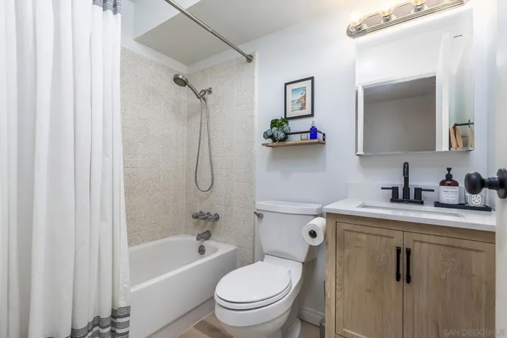 Welcome to Baycrest, one of Point Loma’s finest beach condo communities! This single level spacious, rare and stylish move-in-ready condo, with 877 est. sq. ft. lives like a single family home! Located in Point Loma, just 1.8 miles to the beach! West of I-5, this home brings together comfort, convenience, and thoughtful upgrades all in one place. New dual pane vinyl windows fill the home with natural light, while the spacious living area provides an inviting space for relaxing or entertaining. The newly updated kitchen features stone countertops and modern light-wood cabinetry that adds warmth and a naturally welcoming feel. A stainless-steel gas range with a sleek hood pairs seamlessly with the matching stainless-steel appliances, creating a clean, cohesive look. The outdoor patio extends your living space even further—perfect for morning coffee, entertaining, or winding down at day’s end. The generously sized bedroom serves as a peaceful retreat, with ample storage and its own small patio for added privacy and relaxation. In-unit laundry enhances everyday convenience. The community includes a clubhouse, sparkling pool & spa, and covered carport parking, rounding out the effortless lifestyle this home offers. Just steps from Barron’s Market and nearby shopping centers, this location puts convenience at your doorstep! Parking is P23.