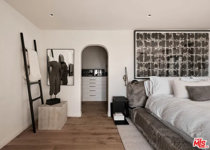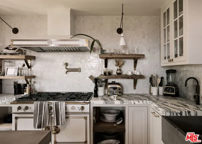 Behind wooden gates in the Hollywood Hills, a reimagined 1920s Spanish residence unfolds with remarkable privacy, architectural integrity, and a city panorama that stretches endlessly beyond its walls. Thoughtfully remodeled by designer Hilary Madigan, the home honors its original character while introducing a level of finish and technology rarely found in historic properties. At the heart of the main level, a dramatic living room is framed by a double-height vaulted ceiling and exposed beams, anchored by a wood-burning fireplace. Arched plaster openings and original tile underfoot guide the natural flow into a formal dining room where French doors open to uninterrupted city views, offering a moment that feels both expansive and intimate.The kitchen is a study in quiet luxury, centered around a La Cornue range and Waterworks fixtures, with integrated Meile appliances and warm, reclaimed wood flooring grounding the space. Throughout the home, the lighting and AV systems have been fully upgraded, with a complete Savant integration for home automation, audio, and visual controlspaired with Lutron Homeworks lighting and a nine-camera security system via Verkada, delivering seamless control and peace of mind. Every bathroom has been redesigned with intention and restraint, outfitted with Waterworks fittings and Toto toilets, continuing the home’s throughline of elevated functionality.A sweeping staircase leads to the home’s lower level where all three bedrooms are thoughtfully placed. The primary suite, with dual Juliet balconies, includes a custom walk-in closet and dressing area that opens into a tranquil, spa-inspired bath. Two additional bedrooms each offer en-suite baths and bespoke storage. The former basement has been converted into a refined flex spaceideal for a gym, home office, or studio. Designed for effortless indoor-outdoor living, the property invites connection to the surrounding landscape from both levels, while modern systems such as a new HVAC, tankless boiler, and EV-charging-equipped garage ensure contemporary comfort throughout. Offered optionally furnished, and reflecting over $2 million in renovations, this is a home that captures the essence of Old Hollywood while delivering a lifestyle firmly rooted in the present.