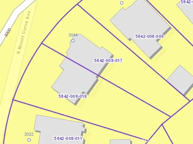 Rare opportunity on one of Altadena’s most picturesque and sought-after streets, near scenic Mount Lowe Park. parcel ID 5842-008-018 on__0_ N Mount Curve Ave (Parcel B) is now a separately legal, unlinked parcel, (also see MLS listing ID PF26018235 for adjacent parcel ID 5842-008-017 on 3044 North Mount Curve Ave)offering flexibility for individual development or acquisition alongside the adjacent parcel for a larger combined homesite.