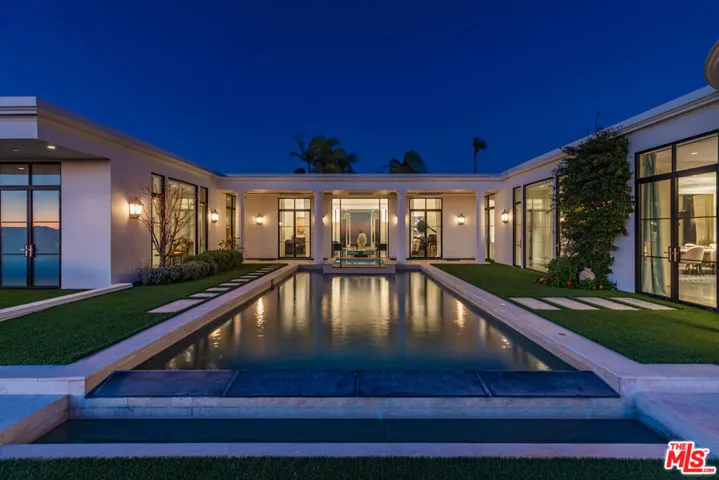 Set on a tranquil cul-de-sac in the prestigious Trousdale Estates, this exceptional mid-century residence occupies a promontory lot with sweeping, unobstructed views spanning the city, canyon, and Pacific Ocean. An oversized motor court creates a grand sense of arrival. Designed with a refined sense of scale, the open-concept layout features soaring ceilings, timeless limestone floors, and subtle Parisian-inspired detailing. A dramatic entry opens to expansive living and entertaining spaces, anchored by a chef’s kitchen and a luxurious primary suite. Walls of glass reveal an infinity-edge pool and spa, while the grounds include a private orchard producing seasonal fruits and vegetables. Casa Alta Tierra is an estate of rare seclusion and lifestyle distinction, framed by a striking panoramic backdrop, offering the ultimate Trousdale living experience.