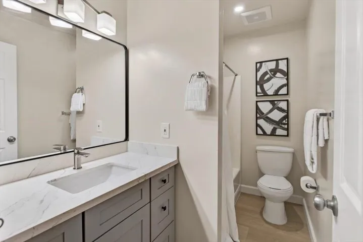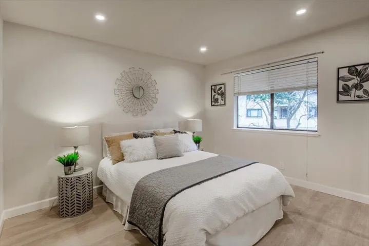 Extensively updated, upstairs condo steps from vibrant Saratoga Village. Award-winning Saratoga schools! Spacious rooms. Many recent improvements: newly added in-unit washer and dryer, new vinyl plank flooring and recessed lights throughout, kitchen with new sink and quartz countertops atop freshly painted cabinets, and beautifully updated bathrooms with new vanities, counters, sinks, hardware, mirrors, and lighting. New electrical subpanel, too! Flip a switch to enjoy the cozy living room fireplace. The living room and both dining spaces overlook the lush greenbelt with views of tranquil Saratoga Creek. The formal dining area and living room open to a large private balcony. The Gatehouse gated community amenities include sparkling pool, hot tub, clubhouse, game room, bike racks, and landscaped greenbelts with water features. Ideal location close to Wildwood Park, shopping, dining, wine tasting, art and entertainment, and easy access to commuter routes, such as Hwy 85.