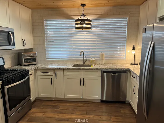 BACK ON THE MARKET! Delightfully gorgeous, this Senior Mobile home with designer renovations will dazzle your heart! You will love the detailed trimmings in this highly modernized home. Walk-in to a beautiful living room with accented ceiling trim and glamorous doors. Each room has exquisite lighting, dual paned windows and mirrored closets in the bedrooms. The master bathroom has a magnificent sink and shower, with new lighting fixtures and toilet. Move over to the family room area and face an open concept in view of the kitchen, which features stainless steel appliances, granite countertops and more elegant lighting for your pleasure. Also featured is an island with cabinetry below for easy access. There are two large windows facing the street bringing plenty of light in at your command, one in the dining area (which has two built in hutches in each corner) and the other at the family room. Also included are two sheds and an orange tree for your daily dose of Vitamin C. The roof is 10 years old, and the water heater is about two years old. There is room to have company and spend special holidays comfortably. Located near a sidewalk leading directly to the pool and clubhouse, you will love the fun activities and amenities…even a dog park across the street. Close in proximity to the 91 and 15 freeways, restaurants, shopping, this cozy home offers an abundance of convenience for you. Come and view it today! Seller will consider reasonable offers! Not all information in the MLS is deemed to be guaranteed, buyer must perform their due diligence and investigate to their satisfaction.
