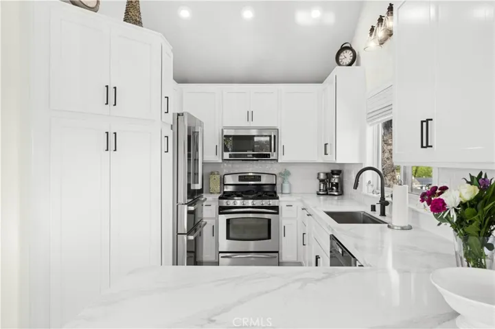 Situated on an elevated corner lot, this remodeled residence offers breathtaking, wraparound panoramic views from the main living spaces and front courtyard, encompassing the Ocean, Catalina Island, city lights, Fashion Island, and Pelican Hill golf course. A quintessential front courtyard provides a peaceful sanctuary for enjoying the ocean blues, complete with a built-in firepit, water feature, BBQ and prep counters. Thoughtfully updated throughout, the home boasts soaring ceilings, rich hardwood floors, elegant wainscoting, and expansive windows with custom treatments that frame the dramatic vistas. Cascading quartz countertops, newer appliances, abundant cabinetry, and a breakfast bar define the kitchen, which seamlessly flows into the dining area. A striking stacked-stone fireplace with hearth, flanked by walls of glass, centers the living room. Additional amenities include: central air conditioning, an alarm system, inside laundry, and generous storage. French doors open from the primary suite to reveal blackout shades, a luxurious bathroom with dual sinks, ample storage, an expansive walk-in shower with multiple showerheads, and a large walk-in closet. Two secondary bedrooms, all on the same floor, share an elegant bathroom featuring a tub/shower combination, a sizable vanity, and stunning imported Spanish tile. Completing the home is a finished garage appointed with California Closets® built-ins, epoxy flooring, and a large wall mirror. With three bedrooms and two-and-a-half baths, this home blends spectacular views with thoughtful upgrades, just down the street from Little Corona. Live the Corona del Mar Lifestyle with proximity to famed beaches, blue-ribbon schools, fine dining, and exquisite shopping.