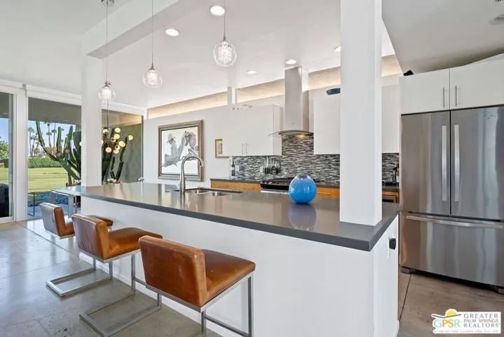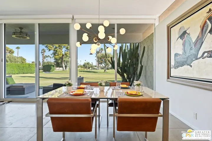 Improved Price! Indulge in the ultimate desert lifestyle at Seven Lakes Golf and Country Club! This stunning 2-bedroom, 2-bath Mid-Century Modern residence has been thoughtfully remodeled to combine timeless design with modern comforts. Every detail has been carefully maintained and upgraded, from newer windows and sliders to the electric panel, roof, HVAC system, water heater, and main water line – offering true peace of mind. Inside, the open-concept floor plan is flooded with natural light and features soaring ceilings, creating an airy, welcoming atmosphere. Entertain with ease as the living, dining, and kitchen areas flow seamlessly together, while the living room frames panoramic views of three pristine fairways. Step outside to a spacious private courtyard, perfect for morning coffee, alfresco dining, or simply soaking in the serene desert surroundings. Originally developed under a Tribal Lease, Seven Lakes has since transitioned to highly desirable Fee Simple Ownership, offering lasting value and peace of mind for homeowners. Seven Lakes offers 24 hour guard-gate, a magnificent manicured 18 hole 2717 yard 58 par executive course, a club house with restaurant and bar. 15 community swimming pools and 15 spas as well as full sized tennis courts and pickleball courts. Built between 1964 and 1972, Seven Lakes Golf & Country Club is a private, mid-century modern gated community of 341 homes. Situated on 120 acres, Seven Lakes is in the southern section of Palm Springs in zip code 92264, close to downtown and shopping. The community provides breathtaking views over a Ted Robinson designed 18 hole executive golf course enhanced by mid-century modern architecture designed by Ric Harrison and William Cody. The Richard Harrison designed residences are situated throughout the golf course with stunning mountain views reflecting the natural beauty of the desert. Seven Lakes Golf & Country Club located just a few miles from downtown Palm Springs, surrounded by the Santa Rosa and San Jacinto Mountains. Living at Seven Lakes means access to unparalleled amenities: an iconic William Cody-designed clubhouse, a championship golf course crafted by Ted Robinson, 15 sparkling pools and spas, and round-the-clock guarded security. Here, every day feels like a luxury retreat. Don’t miss the opportunity to own a home that combines style, comfort, and world-class resort living in one spectacular package.