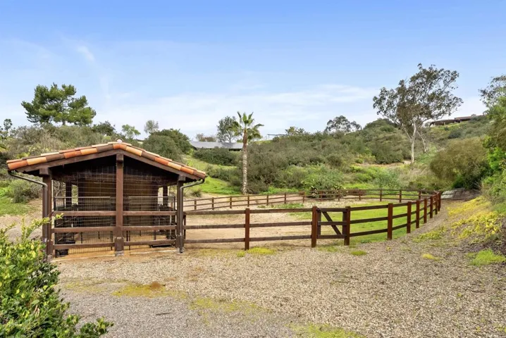 Ideally located on a quiet 4.68 west side parcel within the Rancho Santa Fe Covenant, this timeless, estate offers exceptional privacy in addition to multi-generational accommodations with 2 casitas. Thoughtfully and recently updated while maintaining unforgettable classic Spanish architectural character, the lush equestrian grounds feature a 2-stall barn, paddock, fenced play area, flowering fruit trees, a pond, and a vast ‘valet’ style motor court. Approached via a gracious private drive, the property immediately conveys a sense of serenity, seclusion, and elevation that provides a ‘cooling corridor’ during warm summer days. Designed for both everyday living and elevated entertaining, the residence features a thoughtful floor plan with beautifully proportioned living spaces, soaring vaulted beamed ceilings, picturesque Spanish details, 4 fireplaces and seamless connection to the indoor-to-outdoor flow. Complemented by warm materials and fine finishes, the ambiance is both sophisticated and inviting. At the heart of the home, the main kitchen serves as a central gathering space, magnificently designed for function and connection, and opening to the adjoining living, family, and dining areas. Ideal for hosting the soiree of the season! Expansive fold-away doors and windows invite the outdoors in, anchoring the home in its wondrous natural surroundings. The main level primary suite is a peaceful retreat with generous proportions, spa-inspired amenities, custom finished walk-in dressing room, and a private patio. Three additional en suite bedrooms provide comfort and privacy for family, guests, or flexible use. Enjoy a nearby private executive office and guest casita featuring indoor/outdoor kitchen overlooking the pool and spa. The second guest casita is privately located with attached 2 car garage, 2 bedrooms/bathrooms, and full kitchen with dedicated patio and grounds. Each space in this haven has been carefully considered to support a relaxed yet elevated lifestyle in Rancho Santa Fe’s idyllic year-round climate. The setting offers rare tranquility while remaining just minutes from the Village, renowned golf and tennis clubs, scenic trails, and the Covenant’s award-winning K-8 Public school. The property is connected to sewer and natural gas. 4631 La Orilla represents a rare opportunity to own a classic Covenant estate in one of Rancho Santa Fe’s most desirable locations. Timeless appeal and effortless access to the very best of North County coastal living!
