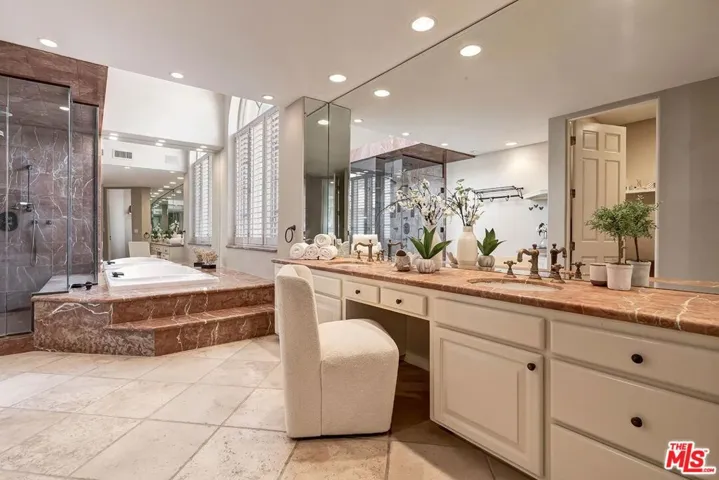 Welcome to 12683 Promontory Road, the only home currently available in the coveted guard-gated Stony Hill enclave of Mountaingate. This peaceful retreat is a world away from the city’s frenetic pace, yet just a few minutes to Sunset and Ventura Blvds. Inside, soaring ceilings and sunlit rooms create an airy, open ambiance as one moves through this spacious residence graced with hardwood floors and stunning details. An impressive living room with double-height ceilings and a dining room that easily seats 12 flank the formal entry gallery. The state-of-the-art chef’s kitchen opens to a spacious family room with stone fireplace and wet bar, perfect for both intimate living and stylish entertaining. Step outside to the private backyard retreat where a flagstone patio, soothing inground spa, and sounds of nature set the tone for quiet relaxation or elegant gatherings under the stars. Upstairs, the palatial primary suite boasts a fireplace, sitting area, two walk-in closets, expansive bath, and balcony with sweeping views of the mountains and city lights. All bedrooms are generously sized suites, one of which has been converted into a private office with rich wood built-in cabinetry. A three-car direct-access garage, laundry room, powder room, and upstairs loft space complete this stunning home located just one block to Stoney Hill’s resort-style pool and clubhouse. Enjoy the best of Los Angeles (including access to top-rated Kenter Canyon Charter and Roscomare Road elementary schools) in a home that balances elegance with ease, privacy with proximity, and refinement with comfort.