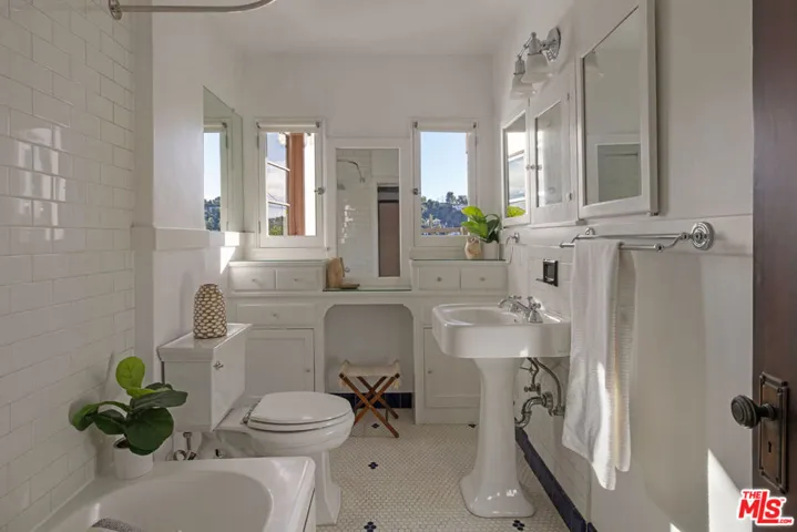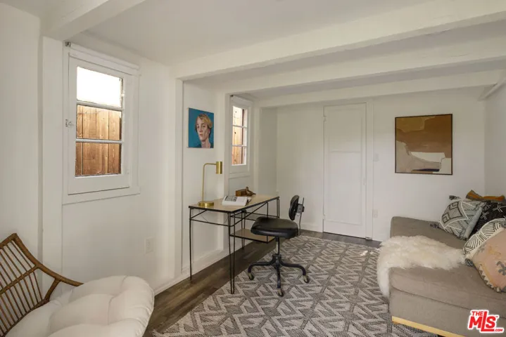 Tucked away from the street in prime Eagle Rock, this handsome Spanish is a study in period charm. The interior is stunning: golden light reflected in wood floors, a soaring beamed ceiling, and a stately fireplace anchoring the spacious living and dining areas. The adjacent library features elegant built-ins and one more fireplace. The kitchen and pantry maintain the period feel with white cabinetry, and there is a cozy breakfast nook. Three bedrooms include a primary wrapped with windows; the bathroom channels a vintage spirit, and the bonus room with a separate entrance is perfect for an office or guests.The outdoor spaces are magical: a terraced backyard with patios to lounge and enjoy sunset views, plus a front patio set beneath lush foliage. Amenities include central AC/Heat, laundry, and parking. Well-situated within the coveted Dahlia Heights Elementary boundary, you’re moments from Capri Club, Little Beast, Cindy’s, and the rest of NELA favorites.