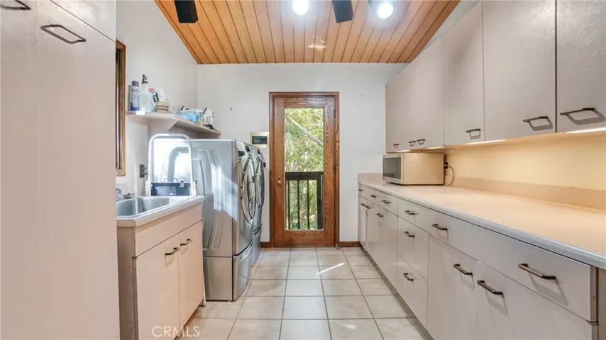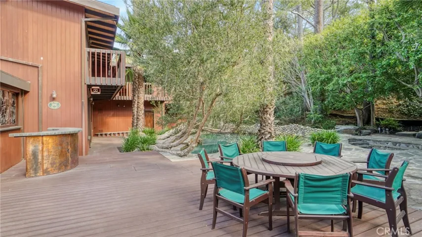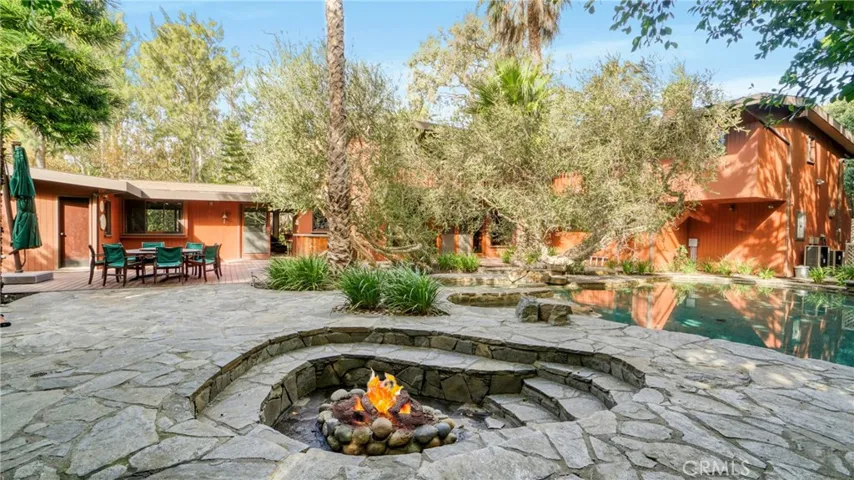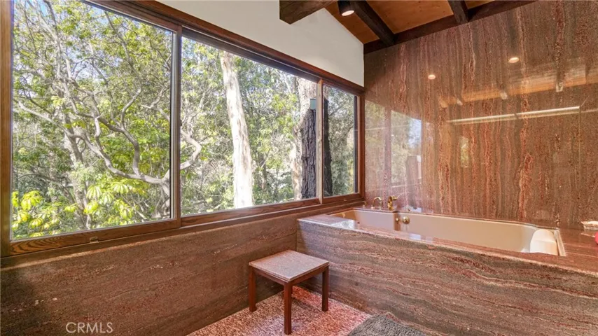The serene outdoor setting includes a pool and spa overlooking a picturesque creek, creating a private retreat ideal for entertaining and relaxation. This gated Malibu residence combines luxury, privacy, and timeless appeal in a coveted location.