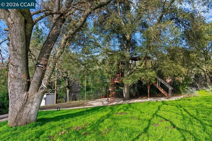 Character, acreage & a fabulous location on N. Thompson at Glen Rd. Set on a rare & expansive 1.27-acre parcel just moments from vibrant downtown Lafayette & BART, this charming residence offers an exceptional blend of privacy, walkability, & opportunity. Wraparound porches & walls of glass create effortless California indoor-outdoor living. Designed for memorable entertaining, the grounds feature paver patios with an outdoor fireplace, built-in kitchen, firepit, plus a large level lawn, treehouse, fruit-tree orchard, & expansive natural space ideal for play or future expansion. Mature redwoods & oak trees anchor the setting, complemented by citrus, persimmon, & apple trees. Inside, warm oak hardwood floors & French doors from nearly every room open to porches & gardens. The updated center-island kitchen features quartz countertops, stainless appliances, & flows seamlessly into the great room. A dining room w bay windows overlooks the outdoor entertaining areas, while the inviting living room offers a gas fireplace & wall of glass. Large bonus/media room provides excellent flexibility for recreation, au-pair, or in-law use. The serene primary suite overlooks the backyard. Office. Walkable to downtown, BART & top schools incl Happy Valley Elementary (1.2mi), CA distinguished sch.