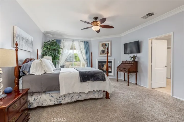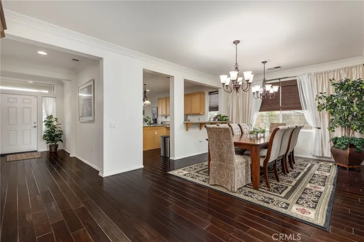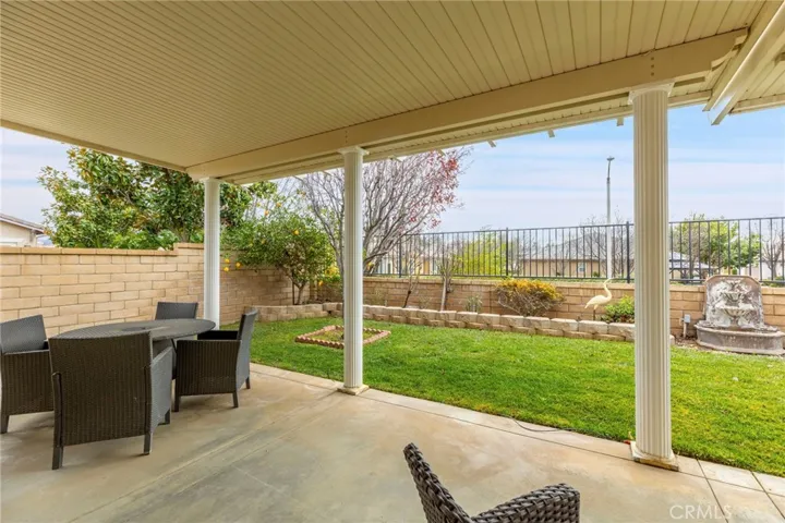 Beautiful LAUREL I Model (2126 SF, 2 BD + 2 BA + Sitting Room) perfectly located on a “corner” lot with no home behind and only to one side, in the highly desirable community of K. Hovnanian’s FOUR SEASONS – BEAUMONT, Southern California’s Elevated 55+ ACTIVE ADULT COMMUNITY. The many UPGRADES and FEATURES Include: Formal Entry area, RICH MAHOGANY WOOD FLOORING ($22,00) throughout, plus Neutral Carpeting the bedrooms, Plantation Shutters, Crown Molding, Large Gourmet Entertainers Kitchen with Plenty of Maple tone Storage Cabinets and Counter Space, Breakfast Bar, Extra Large Island in the Center ALL w/GRANITE Counters, Sharp, Black, Built In Kitchen Appliances, Cozy breakfast Nook provides views of the San Gorgonio Mountains , Natural Light shines in from the front Glass Slider to brighten the Kitchen Breakfast Nook, Rich Wood Mantle Fireplace in Living Room, Spacious Primary Bedroom Suite w/Fireplace upgrade and Mounted Flat Screen ROKU TV Included, Upgraded to Slider to Backyard, Primary Bath w/Spa Tub, Walk In Closet w/Built In Closet World Organizers,Dining room with Double Custom Chandeliers, Custom Ceiling Fans throughout, Guest Bedroom w/dedicated Guest Bath, NEWER HEATING AND AIR CONDITIONING SYSTEM, Indoor Laundry Room with Washer and Dryer Included. The lovely backyard enjoys a lush woodsy view, a relaxing covered patio area and backyard lined with colorful Roses and Fruit Trees. Front Yard Maintenance is Included in the HOA Dues. This is a lively and variety filled community with endless opportunities for new friendships and countless activities. The HOA amenities include 3 pools/spa hot tub, 3 clubhouses, fire pit, paddle tennis, bocce ball, billiard room, card room, movie theater, banquet facilities, 3 fitness centers, BBQ area, pickle ball courts, restaurant, beauty salon, many social groups, guard gated, controlled access security, dog park, and hiking trails. Close to shopping, medical facilities, Cabazon Premium Outlet, Morongo Casino, and Palm Springs. EVERY DAY FEELS LIKE A VACATION!