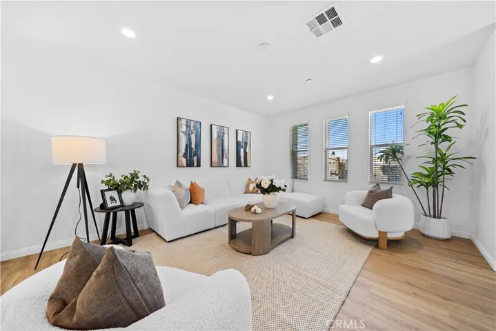 CORNER LOT, FIRST FLOOR SUITE, WALKING TO PARK AND SCHOOL! COVERED DECK & FRONT YARD!! This Stunning three-story townhome located in the vibrant Great Park community of Irvine. With 2,075 square feet of thoughtfully designed space, offers three bedrooms and three and a half bathrooms, The first-floor suite provides flexibility for guests, a home office, or multi-generational living, while direct garage access adds convenience. Upstairs, the open-concept main level is bathed in natural light, seamlessly connecting the living, dining, and kitchen areas. The gourmet kitchen features Special Island, quartz countertops, stainless steel appliances, a walk-in pantry. On the top floor, the primary suite is a true retreat, offering a walk-in closet, a luxurious ensuite bath, and expansive views of the Great Park hot air balloon. A secondary bedroom with its own private bath ensures comfort for all. Enjoy outdoor living with a covered deck and a charming front yard. Residents have access to resort-style pools, scenic trails, sport courts and clubhouse. Located in the top-rated Irvine Unified School District, this home is minutes from parks, shopping, and major freeways.