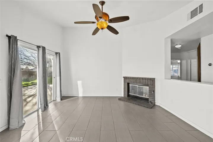 Inside a bright and inviting living room featuring a cozy fireplace, ideal for relaxing evenings. The home offers a dedicated dining area, perfect for gatherings and everyday meals. Ceiling fans throughout provide added comfort, while the included appliances make this home truly move-in ready.