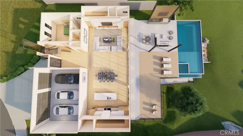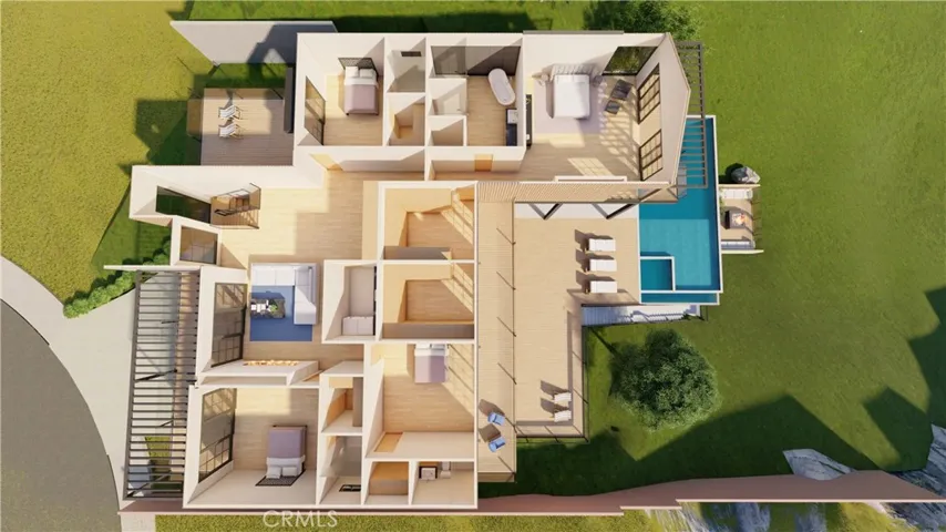 RTI Development Opportunity with City & Mountain Views. Exceptional Ready-To-Issue (RTI) opportunity to develop a luxury modern farmhouse on a 53,798 sq ft cul-de-sac lot with unobstructed city and mountain views. Approved plans call for a 5-bedroom, 4-bath residence totaling 5,231 sq ft of living space, offering a highly desirable layout and strong end-user appeal. Planned features include a 3-car garage, infinity-edge pool, sunken outdoor fire pit, outdoor kitchen/grill, and panoramic view balconies, maximizing indoor-outdoor living and view exposure. All utilities and sewer are available at the front curb, accelerating the construction timeline.