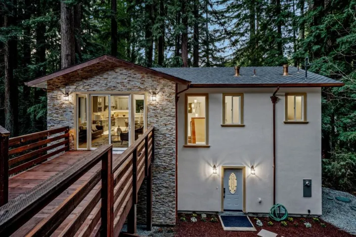 Brand new construction! Watch video walk thru and 3D Tour. Just competed! Never lived in! Seller is licensed contractor and engineer. Beautiful Carmel Stone facade framed in the tall redwoods invokes a touch of Carmel and Boulder Creek styling. Custom amenities include a large open-concept gourmet kitchen, spacious living room with vaulted ceilings, bonus room, and an outdoor deck that is ideal for sunset entertaining or quiet stargazing among the redwoods. Distinctive details include extra-large tile flooring throughout, floor-to-ceiling tile in the dual-sink bathrooms and laundry room, Italian marble-style countertops, custom kitchen cabinets, copper cladding on exterior facia with copper rain gutters, downspouts, and roof fixtures. Recessed lighting, custom Brazilian Sapele wood stairway railings, and motion sensor lighting in bathrooms and laundry room. Located in the acclaimed San Lorenzo Valley School District with schools just minutes away. This home was built beyond current codes and specs. Everything has been built, in some cases overbuilt, with every attention to detail. Engineered septic system cost $100,000.