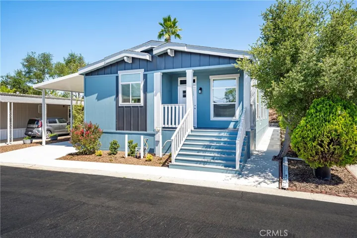 EXCITING NEW HOME: 3 Bedroom (or 2+den/office space) 2 Bath manufactured home sits in one of Fallbrook’s most desirable 55+ communities. With roughly 1,450 sq. ft. of well-planned living space, it showcases quartz counters, a full-height designer backsplash, stainless steel appliances, and a combination of durable LVP flooring throughout the living space and you have the option to add it in the bedrooms in lieu of the carpet. High efficiency central A/C and heat, a covered two-to-three car carport, and a generously sized backyard with a large concrete area. The front yard features an automatic irrigation system, keeping landscaping both attractive and low-maintenance. Whether you’re sipping your morning coffee, hosting friends, or unwinding in the evening, the backyard offers a private and flexible setting for everyday living and entertaining. Just a short walk from the newly renovated clubhouse and pool, the home offers a calm, low-stress lifestyle in a peaceful Fallbrook neighborhood. A 7-year factory warranty adds extra reassurance. The space rent is $1,550 per month.