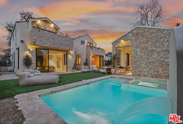 This new construction Modern Tuscan residence blends timeless European warmth with refined contemporary luxury. Offering 5 bedrooms and 5.5 bathrooms, including a beautifully integrated ADU, the home is thoughtfully designed for both elegant living and effortless entertaining. Designer finishes elevate every space, from Roman clay walls to striking Statuario Rosso marble, complemented by custom walnut woodwork that adds richness and depth throughout. The spa-inspired primary suite features a beautiful arched double shower, creating a true retreat-like experience at home. Outdoors, the residence continues to impress with a serene natural stone patio and pool, delivering a resort-style ambiance ideal for relaxation or gatherings. Set in a superior, highly walkable location, this home offers the rare combination of privacy, luxury, and everyday convenience. A distinctive opportunity to own a masterfully crafted home where craftsmanship, design, and location come together seamlessly.