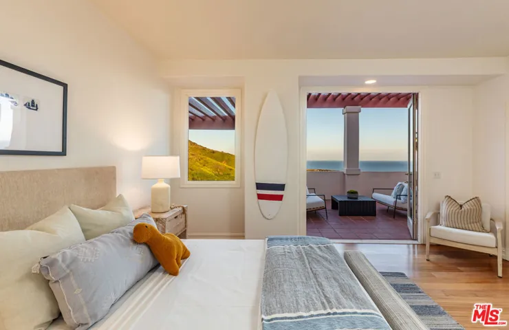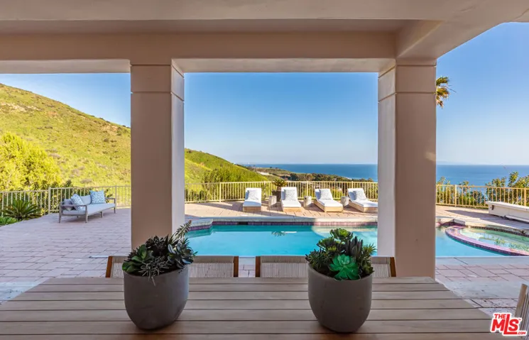 This exquisite Mediterranean-contemporary residence in one of Malibu’s most prestigious, celebrity-favored gated communities commands sweeping panoramic ocean, dramatic coastline, and crashing whitewater views from nearly every room. A grand two-story foyer with palatial spiral staircase opens to a formal dining room, fireplace-warmed living room with sit-down bar, cozy family room, and a spacious island kitchen with junior dining area all flowing seamlessly to expansive patios and decks that embrace the breathtaking vistas. Highlights include an ocean-view living room with grand piano nook, a large ocean-view office opening to a private deck over the water, a versatile first-floor bedroom/gym with bath and patio access, and an upstairs primary suite retreat featuring a sitting area, expansive shaded terrace, dual spa-like bathrooms, and generous his-and-hers closets, plus three additional en-suite bedrooms each with jaw-dropping views. Outdoors, a covered entertainment patio with built-in BBQ adjoins a sparkling pool overlooking the endless blue, complemented by a three-car garage, motor court all just minutes from the Country Mart, Nobu, and the exclusive Little Beach House for the ultimate in private, luxurious coastal living.