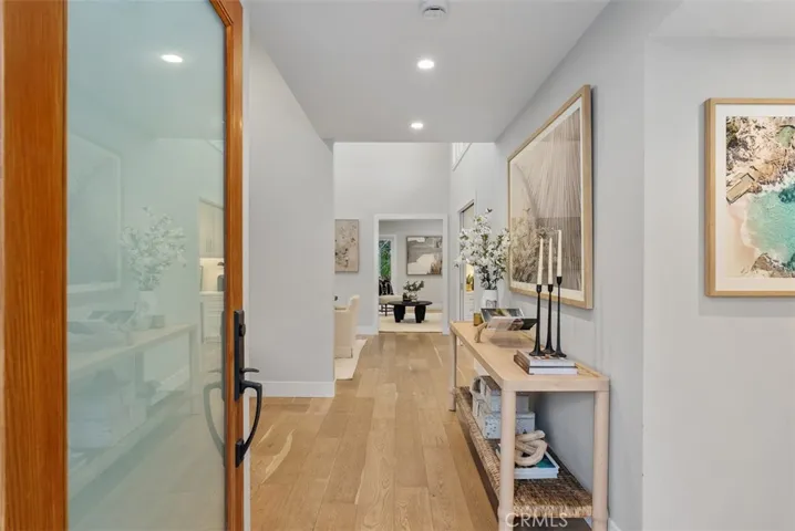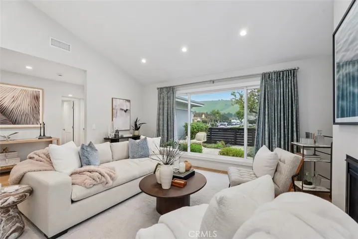 A perfect place to call home! Welcome to a soft contemporary expanded Plan 2 in the prestigious Broadmoor Sierra Bonita neighborhood in Turtle Rock. This move-in ready remodeled single-level blends modern elements with a floor plan with an added dedicated home office/study, interior laundry and a powder room. Striking curb appeal includes a horizontal redwood slat fence adding a clean modern vibe to the facade and is complemented by professionally designed landscaping – perfect for those who value a drought tolerant garden. Entertain in one of 3 distinctive and private outdoor spaces or enjoy the sunset lit hillsides from the front courtyard. Sunlight fills the home through multiple skylights and expansive sliding glass doors, highlighting the wire brushed French oak hardwood floors, upgraded baseboards, LED recessed lighting, and open, airy living spaces. Approx. $350,000 in improvements add to the appeal of this fantastic property which is located steps away from one of the 3 community parks, Bonita Canyon Elementary and close to University High School. The traditional layout offers a living room with added view enhancing windows, soaring ceilings and a Heat & Glo fireplace plus a dining room with clerestory windows and patio access. The custom kitchen opens to the family room—ideal for everyday living and entertaining. Enjoy quartz countertops, custom cabinetry with ample storage space, glass subway tile backsplash, stainless steel appliances, custom bay window and peninsula seating for four. The primary suite is a peaceful retreat with a spa-inspired bath featuring a quartz vanity, Kohler fixtures, a luxurious step-in shower with bench seat and openable skylight. Three additional bedrooms include new luxury vinyl plank flooring and closet organizers. The remodeled hall bath features a quartz vanity, glass-enclosed shower with bench seat & openable skylight. Additional upgrades: whole house PEX piping, dual-pane Milgard windows/doors, LED lighting, Carrier HVAC system, Kohler toilets & plumbing fixtures, rain gutters, even a hidden trash storage area. Residents have access to 3 different community facilities with pools, spas, BBQs, picnic areas, playground, and basketball courts. Ideally located near award-winning schools, top universities, shopping, world class beaches, golf courses, scenic trails, and major freeways, this exceptional home offers the perfect blend of sophistication, comfort, and family-friendly living— and low taxes & HOA dues.