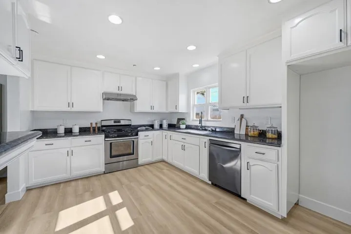 Charming single-level 4BD/3BA home with a spacious, light-filled layout in the heart of East Palo Alto. Set on an approx. 5,942 sqft lot, this move-in-ready residence offers 1,963 sqft of thoughtfully refreshed living space with new flooring, fresh interior paint, and recessed lighting throughout. The open-concept living and dining areas flow seamlessly into the kitchen ideal for everyday living and entertaining. The updated kitchen offers ample cabinetry and counter space for cooking and hosting, while the remodeled bathrooms add a fresh, contemporary finish, including double vanities in two baths. Enjoy an oversized living room, a separate formal dining area, a generously sized primary suite, and spacious secondary bedrooms throughout. The flat backyard with separate side access offers excellent usability and potential for future expansion/ADU opportunity (buyer to verify). Parking is abundant with a side-by-side 2-car garage plus a wide driveway accommodating two additional side-by-side spaces. Exceptionally located: ~5 minutes to Meta, ~10 minutes to downtown Palo Alto, and ~10-15 minutes to Stanford and major tech campuses, with convenient access to schools, parks, and commuter routes. A rare blend of space, comfort, and connectivityexcellent for homeowners and investors