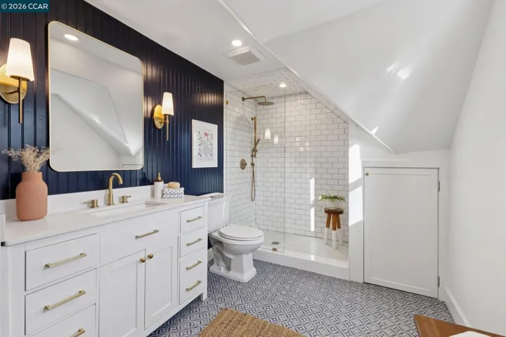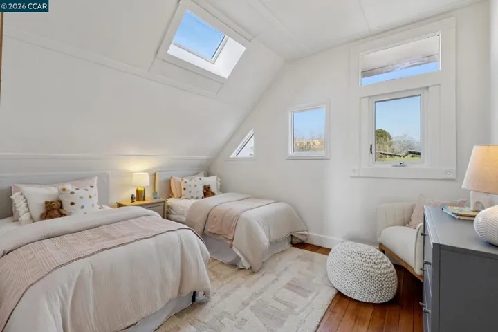 Warm, inviting, and thoughtfully updated, this west Berkeley home blends classic character with a clean, modern sensibility. Sunlight fills the living spaces through tall windows framed by original wood trim, highlighting beautifully refinished hardwood floors and well-proportioned rooms ideal for both everyday living and entertaining. The updated kitchen features soft contemporary cabinetry, white stone countertops, brass hardware, and new stainless steel appliances, along with a charming breakfast nook ideal for casual meals or morning coffee. Three bedrooms offer flexibility for guests, work, or creative use, including a bright upper-level bedroom with high ceilings and skylights. Two tastefully updated bathrooms complement the home’s timeless style. Recent improvements include a updated bathrooms and kitchen, freshly painted exterior, newer roof, and foundation updates, offering peace of mind and long-term value. The generous backyard provides ample space for entertaining, gardening, play, or the potential addition of a studio or ADU (buyer to verify).