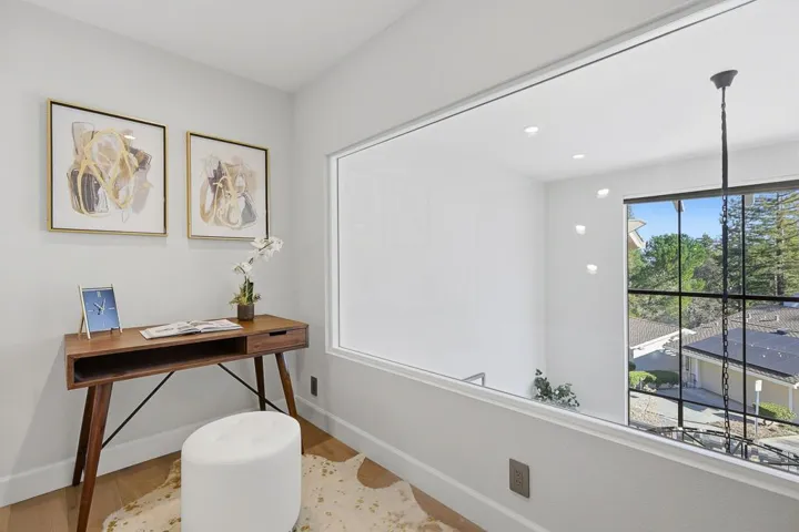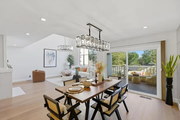 Modern luxury meets serene living in the highly desirable Saratoga Oaks community. This beautifully reimagined townhouse offers 3 bedrooms plus and office, 2.5 bathrooms, combining elegant design with everyday comfort. The light-filled living room features soaring ceilings and east-facing floor-to-ceiling windows with peaceful tree views. The fully remodeled open-concept kitchen includes a bay window overlooking greenery, custom soft-close cabinetry, high quality stainless steel appliances, a breakfast nook, high-efficiency range hood, and water filtration system. All bathrooms have been tastefully updated with new vanities, quiet exhaust fans, custom lighting, and modern Washlets. Recent upgrades include engineered hardwood flooring throughout, fresh interior paint, built-in wet bars with a wine cooler, a new HVAC system, double-pane windows, an electric fireplace, updated outlets with USB ports, and recessed lighting throughout. The oversized two-car garage offers a newer epoxy floor, wash basin, and insulated Chamberlain garage doors with battery backup and MyQ smart technology. Enjoy resort-style community amenities and a prime location close to excellent public and private schools. A rare, move-in-ready opportunity in one of Saratogas most sought-after neighborhoods!