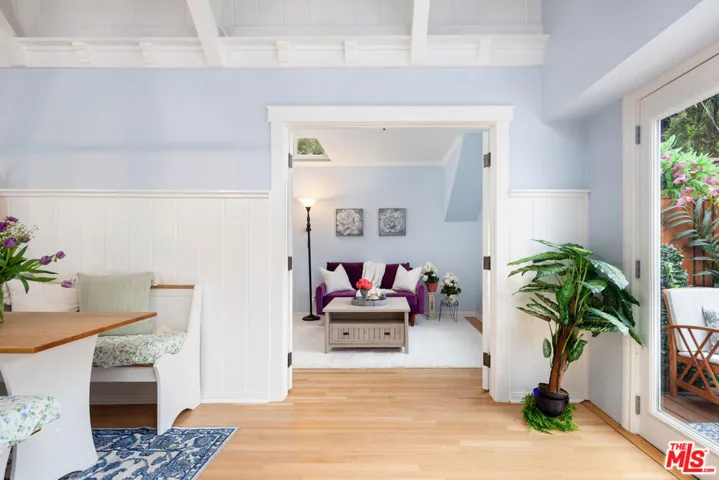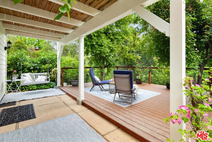 Nestled in the coveted “Silver Triangle” neighborhood of Studio City, this charming New England home seamlessly blends warmth, elegance, and privacy with breathtaking panoramic views. Gleaming new hardwood floors flow throughout, complemented by soaring wood-beamed ceilings and expansive walls of floor-to-ceiling windows and French doors that infuse the home with natural light and character. The inviting dining room features a cozy fireplace and French doors opening to a private patio, perfect for intimate gatherings. The spacious, light-filled great room is designed for gracious entertaining, boasting high wood-beamed ceilings and panoramic windows that showcase stunning vistas. The chef’s kitchen is equipped with granite countertops and opens effortlessly to the family and dining rooms, creating a harmonious flow. Each of the three beautifully appointed bedrooms is ensuite, with the entire lower level dedicated to the luxurious primary suite. This sanctuary includes a walk-in cedar closet, dual vanity, soaking tub, and access to a large, secluded deck overlooking a fragrant rose garden and captivating views. Adding to the home’s enchantment is a delightful storybook playhouse. Ideally situated just moments from Ventura Boulevard’s fine dining and shops, the Farmer’s Market, Carpenter School, Fryman Canyon, and scenic hiking trails, this exceptional Studio City home offers a unique blend of comfort, style, and location.