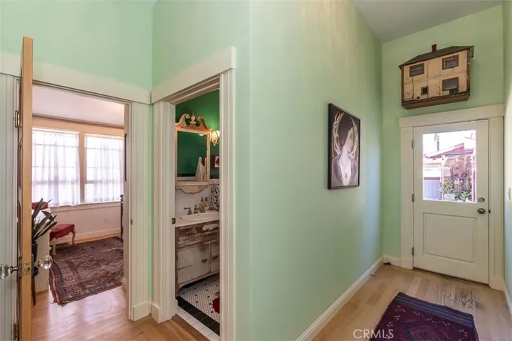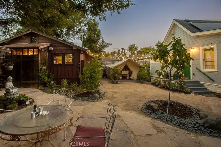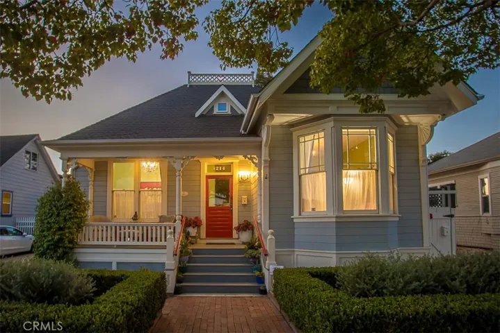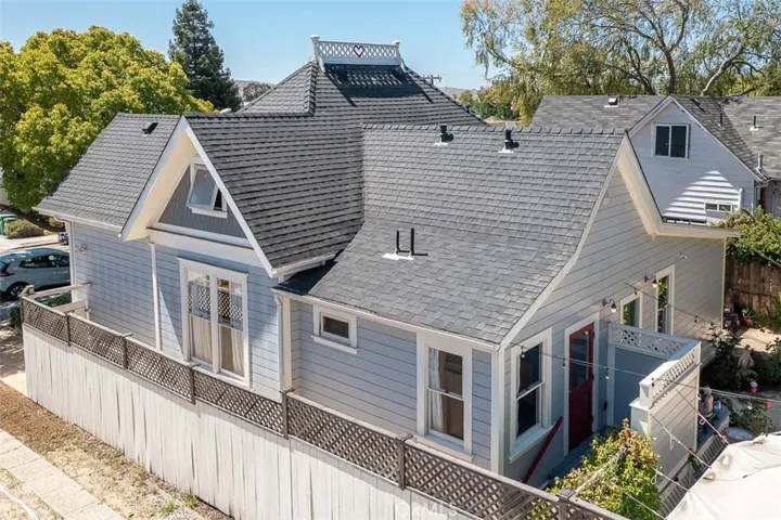 Stunningly unique – Step into timeless charm and modern luxury with this completely rebuilt Queen Anne cottage featuring three separate dwellings on iconic Mill Street. A rare Mills Act-certified property, it offers both character and significant property tax savings in one of San Luis Obispo’s most beloved neighborhoods. With a one-bedroom main residence, one-bedroom apartment and extraordinary carriage house in the back with loft bed, the property can blend into many different lifestyles and uses. Originally built in 1899 by Teresa True, a pioneering seamstress and single mother, this historic home has been meticulously rebuilt from the ground up—honoring its heritage while integrating modern comforts and structural integrity. Every new board was caringly placed to resemble the past. Craftsmanship shines throughout, from rebuilt sash windows and redwood shiplap to oak plank floors and drought-tolerant landscaping. The main home includes a restored 1-bedroom residence connected to a private-entry one-bedroom apartment—ideal for guests, family, or rental income. Soaring ceilings accent the elegant living room with bay window and a sunlit dining room. The charming kitchen is chef-functional, and the bathroom showcases designer tile and a restored clawfoot tub. Enjoy mornings or sunset chats on the idyllic front porch, or unwind in the lush garden oasis with fruit trees, vibrant flowers, and a tranquil seating area. A charming backyard yurt on a wood platform offers a peaceful guest retreat or creative space. At the rear, the reimagined carriage house stuns with open beams, pine plank floors, a loft bed, Big Sur-style aesthetic, half bath, and outdoor shower—perfect for guests or quiet reflection. Additional highlights include a standing attic with expansion potential, a rebuilt shed, owned solar, historic features like a widow’s walk and hitching post, and a walkable location near downtown SLO, Cal Poly, and bike paths. Perched on a hill in a low fire and flood risk zone with clean air and minimal sea level rise exposure, this property offers rare peace of mind—just 10 minutes from the coast. This is more than a home—it’s a living piece of SLO history, beautifully reimagined for sustainable 21st-century living.