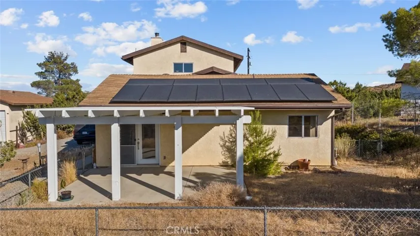 Welcome to 8676 Sky Line Drive in the picturesque city of Pinon Hills! This stunning two-story single-family home features 3 spacious bedrooms and 2 elegantly designed bathrooms, blending contemporary flair with comfort. The residence showcases exquisite tile and laminate flooring, ambient lighting that creates an airy atmosphere, and charming ceiling fans that provide a refreshing breeze, all complemented by beamed ceilings that add a touch of sophistication. Upon entry, you’re greeted by an expansive living room to your left, perfect for relaxation and warmth, complete with a cozy fireplace that invites you to unwind. The kitchen is a true entertainer’s delight, boasting gorgeous granite countertops, a central island with a sleek electric stovetop, a built-in oven, a stylish range hood, a dishwasher, and generous cabinet storage, transforming it into a culinary haven. The inviting dining area is ideal for enjoying meals, while a dedicated laundry room enhances daily convenience. Bright and airy, the bedrooms offer ample space for personalization, with the primary suite featuring a luxurious en-suite bathroom that includes a stylish vanity area, a separate jetted bathtub, and a walk-in shower, along with a private balcony perfect for savoring the morning sun or evening breezes. The additional bathroom showcases both a bathtub and a walk-in shower for added comfort. Outside, your private backyard oasis awaits, complete with plenty of room to create your dream retreat on a spacious 3.2-acre lot where possibilities are endless. The detached garage offers ample parking space and can also be utilized for extra storage or transformed into an ADU. Ideally situated just a short drive from the 138 Highway, this exquisite property presents an incredible opportunity to embrace a tranquil lifestyle in a beautiful setting. Experience the charm and elegance of this remarkable home at 8676 Sky Line Drive!