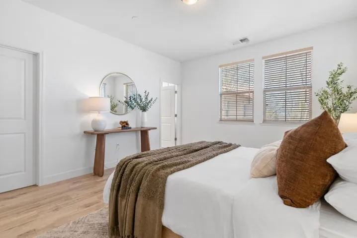 Are you on the lookout for something special? Fabulous opportunity to own this amazing 2.5 year old home part of the Ov8tion collection of homes. The neighborhood is a timeless blend of classic charm and modern convenience. You’ll love its peaceful suburban ambiance. This community was uniquely built wrapped around Sunnyvales newest park – Muwekma Park, a 6.5 acre nature inspired inclusive destination. This end unit home boasts large picture windows bathing the home with beautiful natural lighting. Custom blinds, curtains and electronic shades adorn all windows. With approximately 2064sq ft of living space, this home features 3 spacious ensuites. Feel like a chef while preparing family feasts with ease in the well-designed kitchen. This space delivers all you need with an abundance of cabinetry dressed with sleek quartz slab countertops. Laundry duties are a breeze with a dedicated laundry on the main living space level. Other features include central AC, dedicated split system in downstairs ensuite, Lutron enabled light switches, bidet in primary suite and Agara smart locks. Come visit and imagine your new lifestyle in this amazing home!