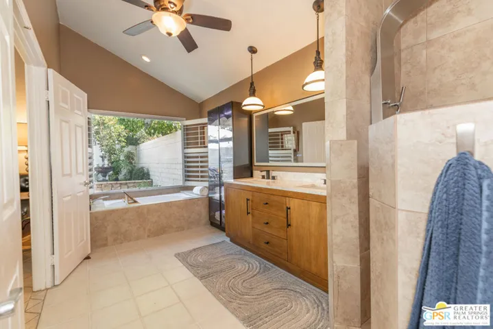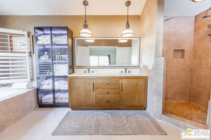 This beautifully renovated 3-bedroom, 2-bathroom home is located in the highly desirable Desert Breezes Resort and offers 1,839 sq. ft. of thoughtfully designed living space. Extensive renovations completed in 2022 include updated sliders, a gourmet kitchen, upgraded bathrooms, stylish flooring, a private patio with tranquil waterfalls, an outdoor shower, a convenient wash station for pets, and a luxurious private spool. The backyard is a true private retreat, ideal for both relaxation and entertaining, enhanced by lush landscaping and soothing water features. Recent improvements by the current owners include brand-new sliders in the primary and guest bedrooms, a beautifully updated primary bathroom, a private patio off the guest room, an upgraded sprinkler system, a raised back wall for added privacy, enhanced ductwork, a striking upgraded fireplace, an alarm system, and modern landscape lighting. Ideally situated across from the world-class PNB tennis stadium – A Must See!