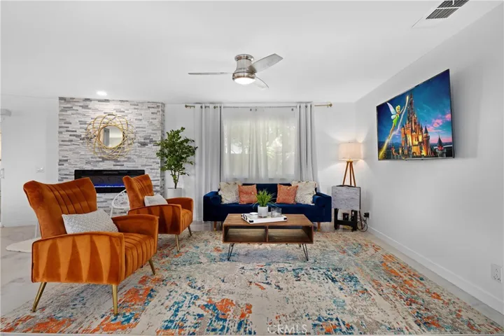 The kitchen anchors the home with quartz countertops, stainless steel appliances, and a layout designed for both daily use and entertaining. Interior accommodations include three bedrooms and two designer-finished bathrooms, along with a dedicated laundry area.