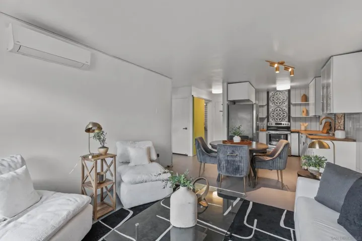 Light and bright, this move-in ready unit is filled with natural light and is one of the most desirable units in the complex. The private outdoor patio overlooks a scenic hillside with peek-a-boo views of Mission Bay, offering a rare sense of privacy compared to many units that look out into common area spaces. Recently renovated with modern updates and a tasteful splash of color throughout, the home features stylish concrete floors, custom lighting, and butcher block countertops, creating a modern yet warm aesthetic. The unit is equipped with zoned mini-split systems for air conditioning and heating, a rare upgrade not found in every unit in the building. Community amenities include a pool, hot tub, and BBQ areas. Easy freeway access to I-5 and conveniently located near La Jolla, Pacific Beach, and Costco, with an abundance of nearby coffee shops and restaurants. Includes a designated off-street parking space. A must-see opportunity in one of San Diego’s most desirable central neighborhoods.