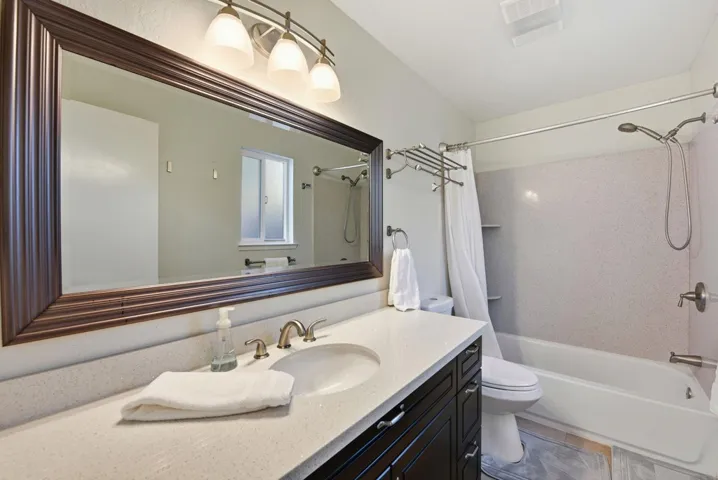 Stunning and exceptionally designed home, that has been beautifully remodeled and perfect in every way. This home has an amazing open floor plan with a gorgeous kitchen, with plenty of cabinets and great counter space. Gorgeous flooring flows throughout the home & the Primary bedroom has wall to wall closets and a fantastic new ensuite with contemporary tile in an oversized shower with full glass enclosure. The home has 4 perfectly sized guest rooms, 2 full guest baths that tastefully updated and are very spacious and an additional sitting area that can be used as a multi-generational space, office or second living space. Custom window shades, AC, fully finished oversized garage, recessed lighting, tons of storage and more are delivered on this home!