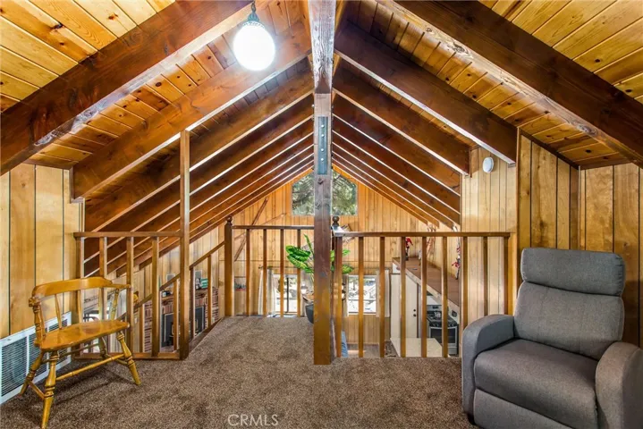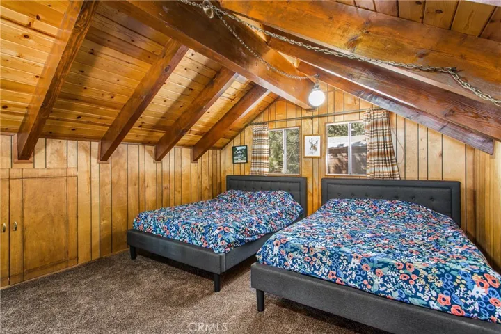 Come relax and unwind in this beautifully updated cabin in Southern California’s local ski destination, Running Springs. This residence seamlessly blends the original 1970s charm with modern upgrades. Step inside to an open floor plan featuring a classic A-frame vaulted ceiling and brand-new vinyl plank flooring. The remodeled kitchen boasts maple cabinetry, quartz countertops, new black stainless steel appliances, and a custom island with additional seating—perfect for entertaining. The main living area is bright and inviting, with large windows capturing serene forest views, a built-in fireplace, and direct access to the rear deck. Upstairs, an open loft offers extra sleeping space or a fun family retreat. The downstairs garage has been transformed into a bonus living area with a full bath and laundry. Enjoy outdoor living on the wrap-around deck, rebuilt with premium materials and craftsmanship, or soak in the private above-ground hot tub after a day of skiing or hiking. Additional updates include modernized bathrooms with new cabinetry, quartz countertops, and fixtures, as well as all-new plumbing, electrical, and furnace systems. Centrally located near popular ski resorts, Lake Arrowhead, and Big Bear, this home makes an ideal getaway and has a proven Airbnb rental history. Fully furnished and equipped with a short-term lodging permit, it’s turnkey and ready for your enjoyment or rental income.