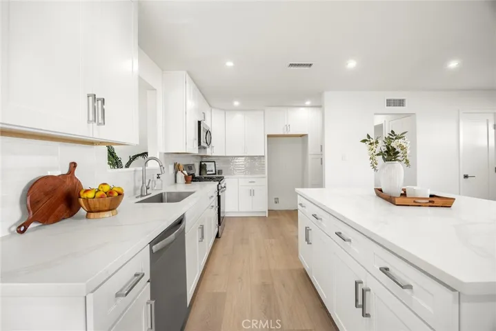 Welcome to this beautifully completely remodeled 3-bedroom, 2-bath home, ideally located on a quiet cul-de-sac in the highly sought after community of La Mirada. Modern upgrades meet timeless comfort in this truly turnkey property. The brand-new kitchen features sleek quartz countertops, a center island, brand-new appliances, and an open-concept layout that flows effortlessly into the rest of the home—perfect for entertaining and everyday living.