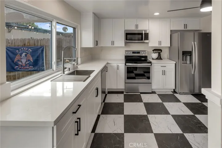 This move-in-ready home offers a thoughtfully designed layout with stylish upgrades throughout. The newly remodeled kitchen features crisp white shaker cabinetry, sleek quartz countertops, stainless steel appliances, modern hardware, and generous storage—perfect for both everyday living and entertaining. The kitchen opens seamlessly to the dining and living areas, creating a functional and inviting main level.