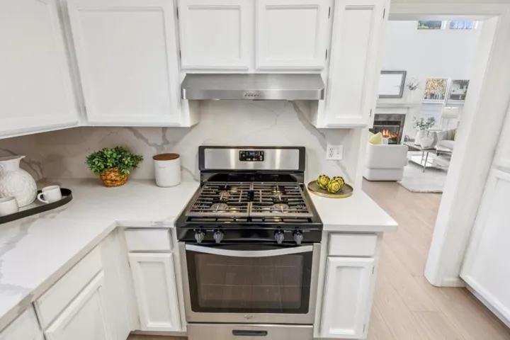 Stunning end unit modern townhome nestled in scenic park-like setting in desirable Nantucket Cove. High ceilings & various windows provide amazing natural light and open view. Large living size of 1730SF with potential of 3rd bedroom/office & full bathroom downstairs. Beautifully remodeled with new quartz kitchen countertops, ample white cabinetry, stainless steel appliances including gas range, fridge, dishwasher. New elegant laminate floor throughout. Two remodeled fireplaces. Loft-style staircase & landing leads to two primary suites. Main suite features cozy wood-burning fireplace, dressing area, walk-in closet & separate stall shower & tub. In unit laundry & attached side by side 2 car garage. Sliding door opens to large wrap around rear patio next to greenbelt. This home also has a front courtyard perfect for outdoor entertainment. Port Royal amenities include clubhouse, pool, hot tub, tennis courts, gym, playground. Near Bayside walking trail & parks, award winning FC Elementary, Edgewater Shopping & Dining. Easy access to HWYs 101 & 92.