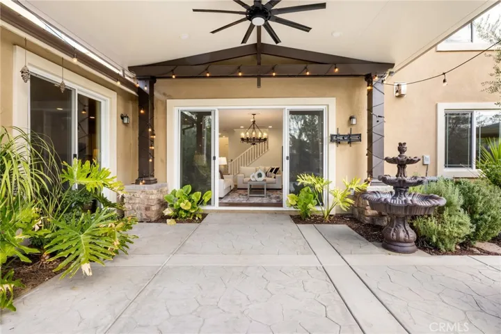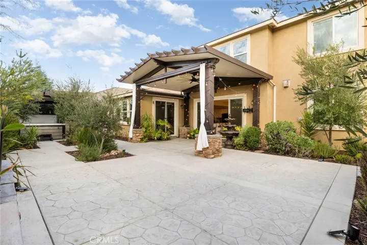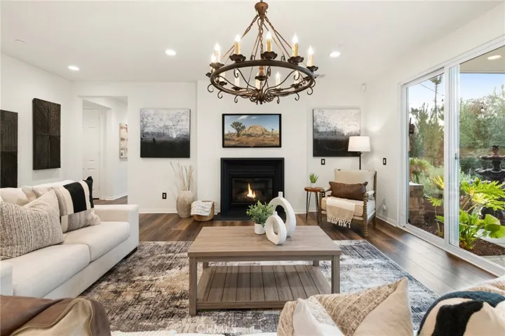 Built in 2021 and showcasing $150,000 in upgrades, this nearly 3,900 sqft residence blends modern elegance with warm sophistication in the highly desirable community of Audie Murphy Ranch. Set on a 7,457 sqft lot with mountain views, solar, and a 3-car garage with EV charger, this home offers exceptional space and thoughtful design. Fresh white paint, LVP flooring throughout the first floor and abundant natural light create a warm atmosphere from the moment you enter. A grand entryway with a statement chandelier opens directly into a spacious formal dining area that connects to both the walk-in pantry and gourmet kitchen, creating a smooth and functional flow. The kitchen boasts granite counters, white cabinetry, upgraded hardware, stainless steel appliances, a large eat-up island with pendant lighting, and seamlessly flows into the rare morning-room addition, which provides extra dining space and additional backyard access. The kitchen transitions seamlessly into the great room, centered around a gas fireplace, custom chandelier, and double slider that brings the indoor and outdoor spaces together. A flex room sits just off the main living area, ideal for an office or optional 5th bedroom, as well as a guest bath, laundry room, mudroom with built-in storage, and garage access to complete the main floor. The second level opens with two secondary bedrooms positioned near a full bath appointed with dual sinks and shower-tub combo. Just beyond this area, another spacious secondary bedroom includes a walk-in closet and its own ensuite bath with a walk-in shower. The expansive loft is set just off this ensuite bedroom, creating a layout that functions as a central gathering space with abundant natural light and elevated views. The luxurious primary suite extends off the loft and features a beautifully appointed ensuite with tile floors, quartz counters, a dual-sink vanity, oversized super shower with custom tile, and a spacious walk-in closet. Plush carpet enhances all bedrooms and the loft, adding comfort throughout the living areas. The backyard feels like a private retreat with a spacious covered patio, stamped concrete, mature trees and drought-tolerant landscaping offering total privacy, a custom fireplace and an above-ground spa with its own patio cover. Community amenities include a clubhouse, pools, sports parks, trails, skate park, and all conveniently located near the award winning Taawila ES and Kathryn Newport MS and between the 15 and 215 freeways.