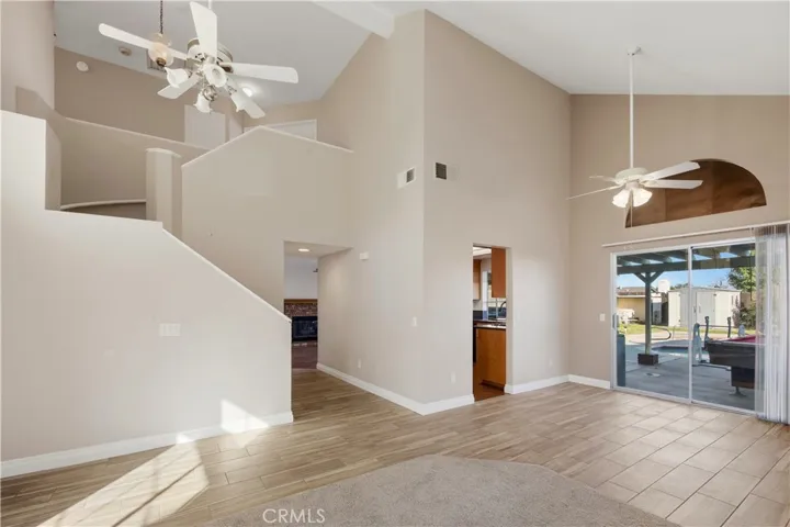 Strategically designed 1 bedroom & 1 full bathroom with double doors on the first floor, perfect for guests or a home office. The ample sized primary suite provides views of the lush backyard- Private Pool & Mountain view! The open floor plan boasts vaulted ceilings throughout the living and dining area. The spacious family room, complete with fireplace, flows seamlessly into a generously sized area, ideal for family gatherings. Walk through the sliding glass door from the family room, you are greeted by a very large sized covered patio structure with ceiling fan, a sparkling pool, BBQ area with sink to entertain large crowd on the weekends and to enjoy pool party on summer days with outdoor misting system to cool the entire patio area.